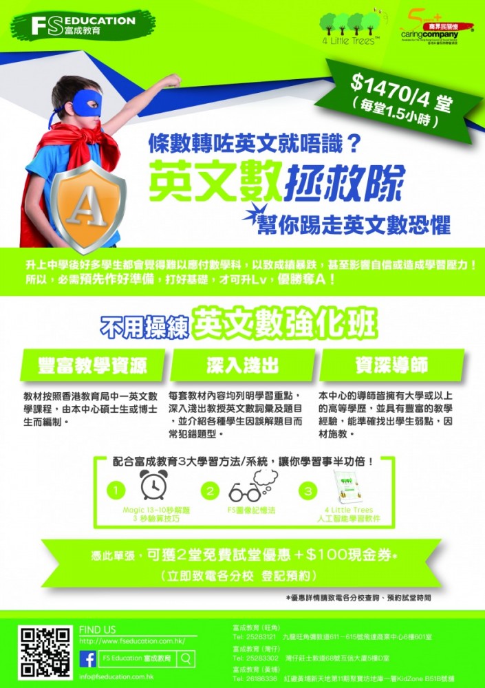 FS Education was established in 2005, they have many years of teaching experience. Provide students with an enjoyable and effective learning environment, with an interesting way of teaching, so that students acquire knowledge in a short time, while improving students' scores and the interest in the subject.