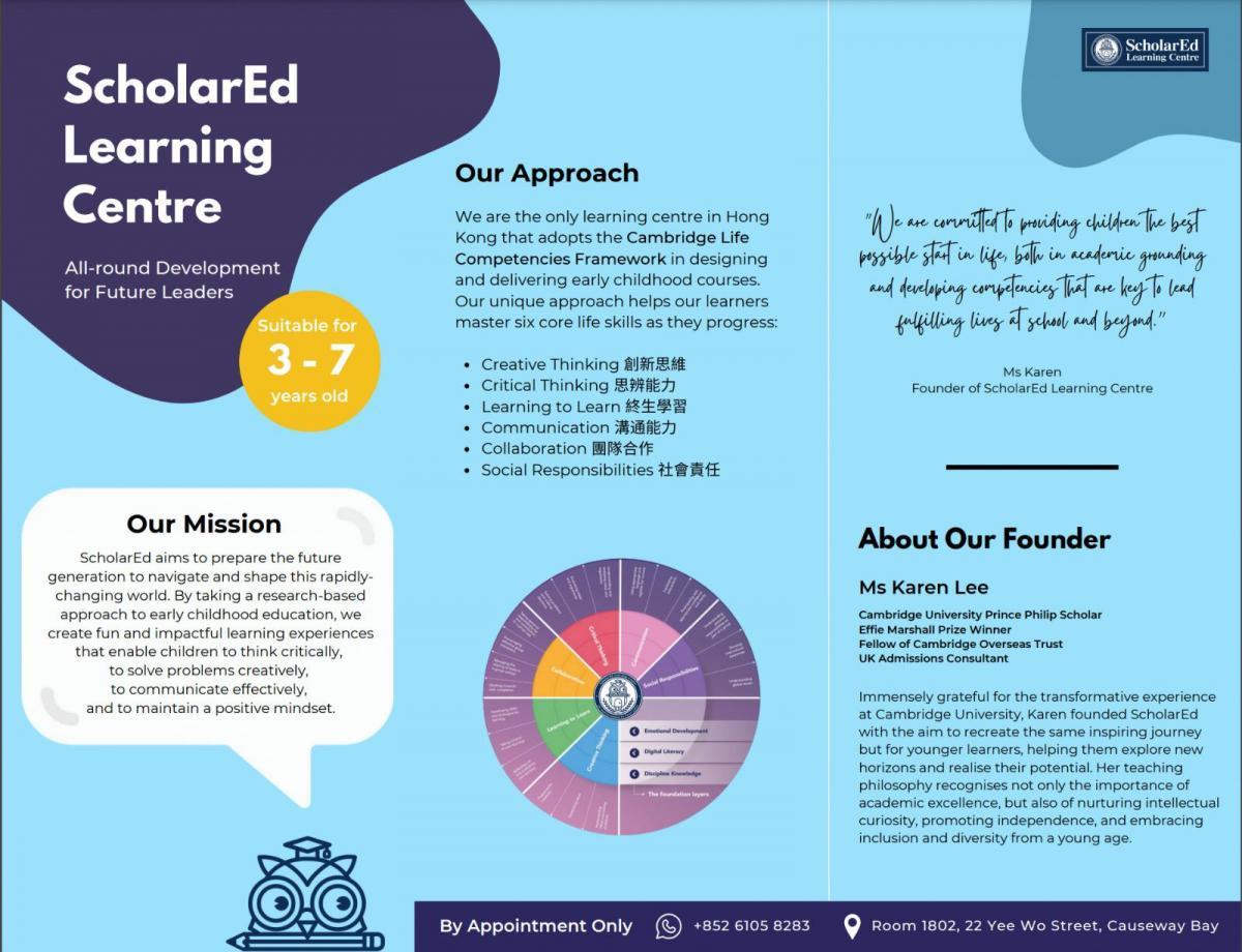 "ScholarEd aims to prepare the future generation to navigate and shape this rapidly-changing world. By taking a research-based approach to early childhood education, we create fun and impactful learning experiences that enable children to think critically, to solve problems creatively, to communicate effectively, and to maintain a positive mindset."