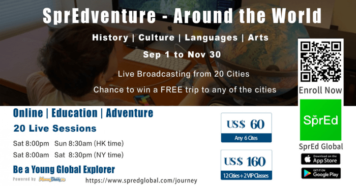 Missing the days when we can travel to different countries - see and learn? Following the exciting summer debut, SprEdventure - Around the World Live Learning Series is now available at all seasons.