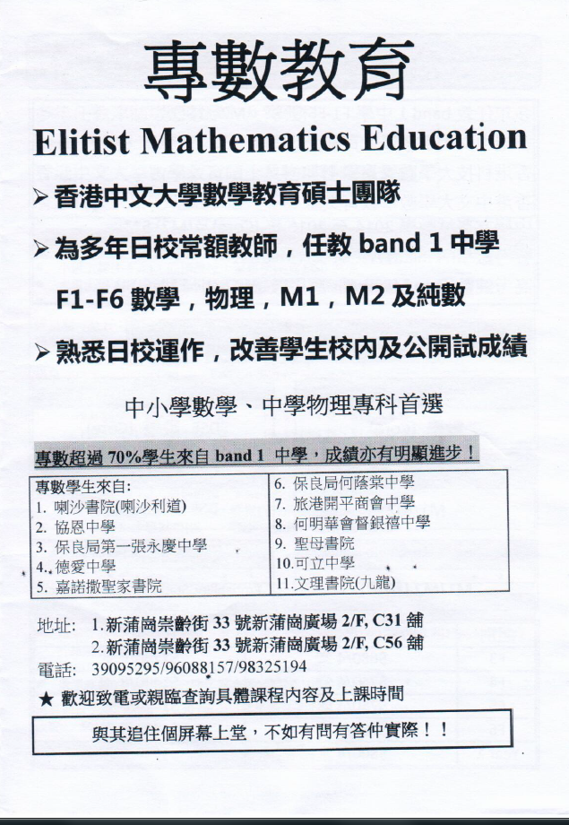 學習中心 私人 專數教育 黃大仙區 0 星評價 (五星為滿分)0 評論 撰寫評論 Open Map 概述 詳細資料 評論 最新消息和優惠 相集 聯絡方式 概述 中小學數學、中學物理專科首選 我們香港中文大學數學教育碩士團隊擁有5年中學教學經驗更能貼近學校需求及HKDSE之出卷模式 多年日校常額教師 任教band 1 中學F1-F6數字 物理 M1、M2和純數。超過70%報讀學生來自BAND 1 中學,成績亦有明顯進步。 用戶評分 0 星評價 (五星為滿分)0 評論 所有評論 教學語言: 廣東話 班級類別: 私人 / 小組 中心類別: 私人 主題: 學術/教程數學物理 所有資料 所有照片 詳細資料 教學語言: 廣東話 班級類別: 私人 / 小組 中心類別: 私人 主題: 學術/教程數學物理 評論 用戶評分 未評分 優惠 這個商戶暫時沒有提供優惠 相集 聯絡方式 電話 96088157 地址 新蒲崗新蒲崗廣場2樓c31舖 分享 Facebook Google Plus Twitter 電子郵件 有甚麼問題? 檢舉錯誤數據